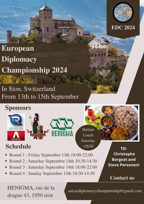 La Suisse accueille du 13 au 15 septembre 2024 le Championnat d'Europe de Diplomacy