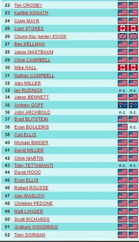 | Allemagne | Matthew Crill | 12 | 7012 |
