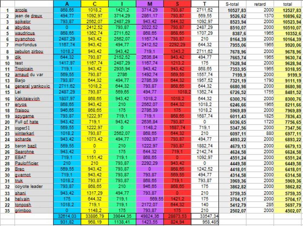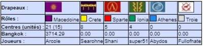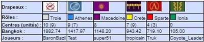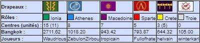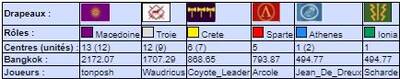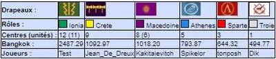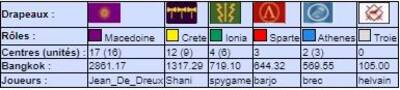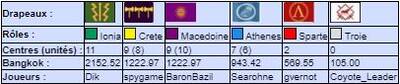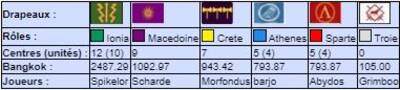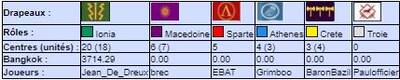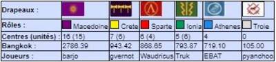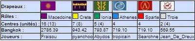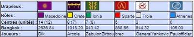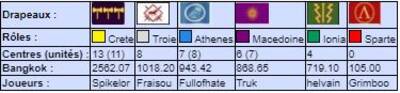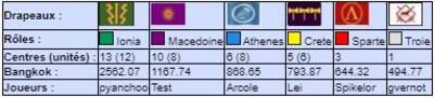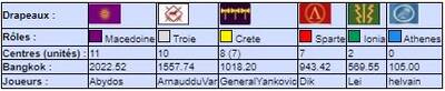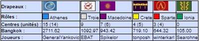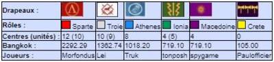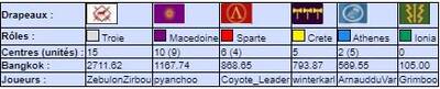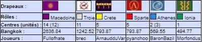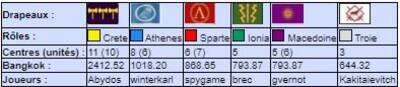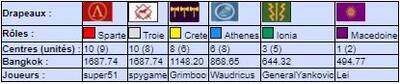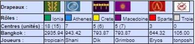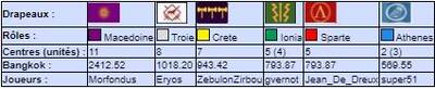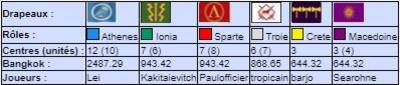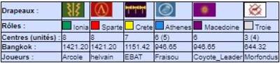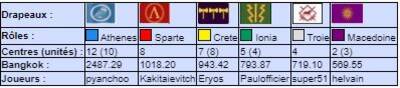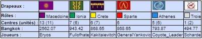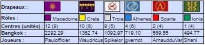 | # | Pseudo | Nom | Athenes | Crete | Ionia | Macedoine | Sparte | Troie | Finale | Qualif | Total |