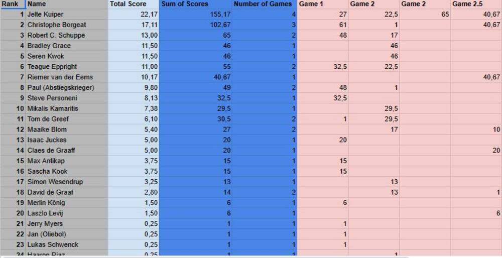 Après les parties de septembre, les sept meilleurs joueurs sont invités à participer à la table finale.