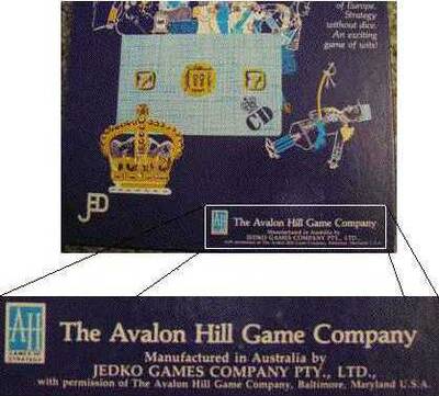 Les seules autres choses qui distinguent cet ensemble de l'édition Avalon Hill sont le logo Jedko sur le couvercle de la boîte et le dos du livre des règles, et une note imprimée sur la boîte / plateau / règles / règles de base / cartes de conférence indiquant que le jeu a été fabriqué en Australie par Jedko Games Company avec la permission d'Avalon Hill.