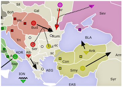 1. Soyez anti-russes en les empêchant d’accéder à la Roumanie ! La Serbie soutient Budapest en Roumanie. La Turquie sera généralement plus qu’heureuse de voir cela. En proposant une alliance AT et en la lançant, vous pouvez souvent convaincre la Turquie de vous laisser la Grèce même si vous y allez sans soutien. Peut-être pouvez-vous même demander à la Turquie de vous apporter un soutien supplémentaire et obtenir une Autriche rare à trois construction