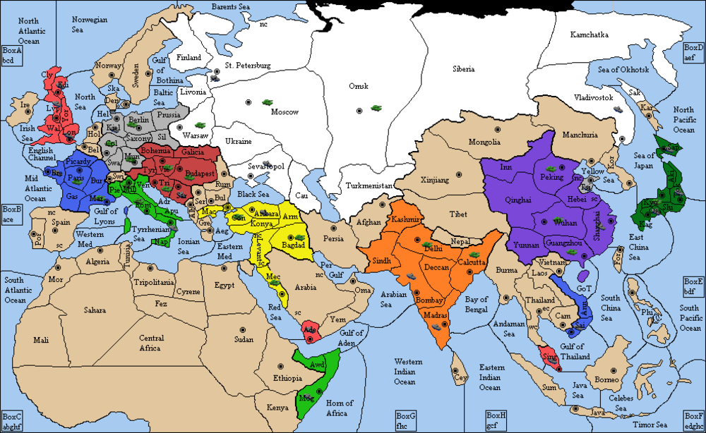 | Russie | Moscou, Omsk, Varsovie | Sebastopol, StPetersburg, Vladivostok |